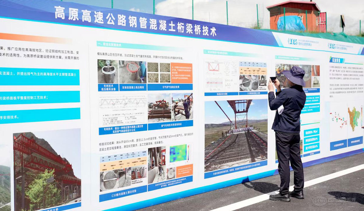 2025年7月30日,與會專家學者在久馬高速K188三聯(lián)生態(tài)護坡段、龍日壩互通(四川國際工程監(jiān)理有限公司久馬高速公路JL6駐地辦監(jiān)理范圍)、龍日壩段紅原2號橋(四川國際工程監(jiān)理有限公司久馬高速公路JL6駐地辦監(jiān)理范圍)等點位進行實地觀摩,深入了解項目高原生態(tài)環(huán)??萍际痉豆こ炭傮w成效、生態(tài)保護理念指導(dǎo)選線設(shè)計等科技示范工程創(chuàng)建成果,并在7月31日的交流會上就高原生態(tài)環(huán)保科技示范工程創(chuàng)建經(jīng)驗進行研討,共同見證如何通過科技創(chuàng)新技術(shù)在平均海拔超3300米的雪域高原上,破解生態(tài)保護與工程建設(shè)的難題,為高原高速公路建設(shè)形成一套可復(fù)制的綠色智慧建造樣板。